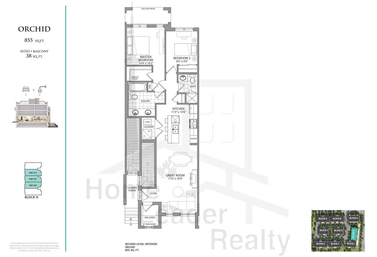 Orchid 2 Bed , 2 Bath 846 SQFT East