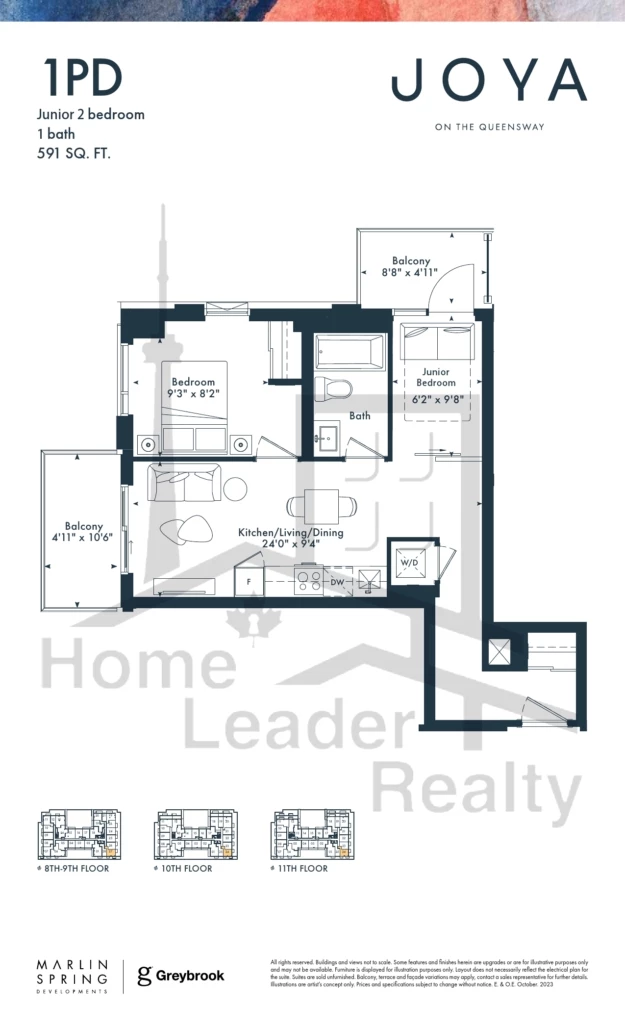 Suite 607 3J 3 Bed , 3 Bath 1094 SQFT South West