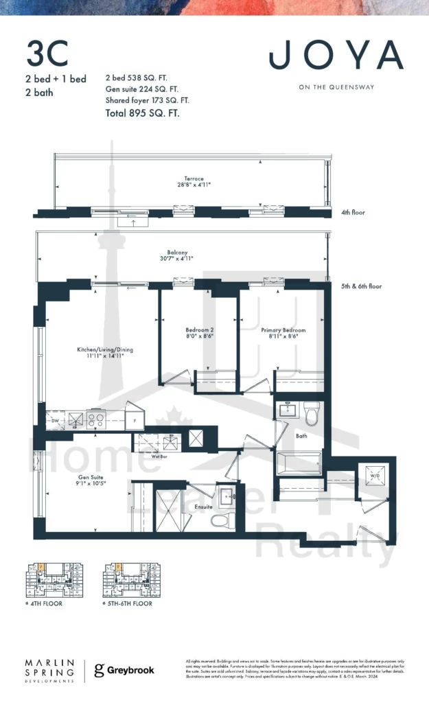 Suite 607 3J 3 Bed , 3 Bath 1094 SQFT South West