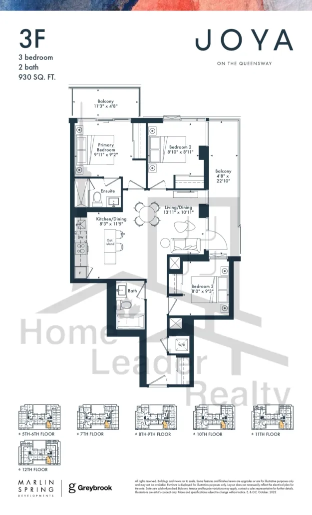 Suite 607 3J 3 Bed , 3 Bath 1094 SQFT South West