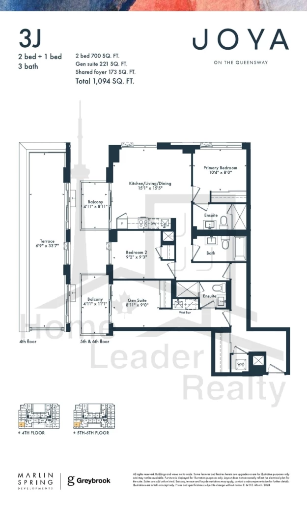 Suite 607 3J 3 Bed , 3 Bath 1094 SQFT South West