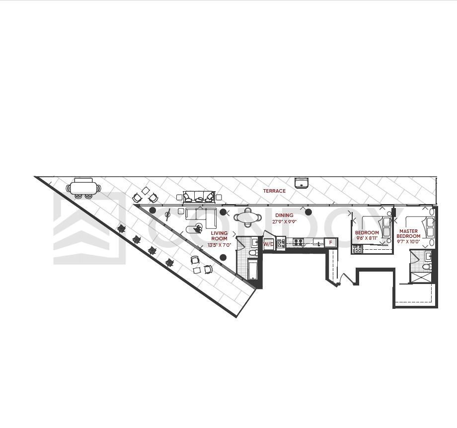 2B_F (Terrace) 2 Bed , 2 Bath 677 SQFT West