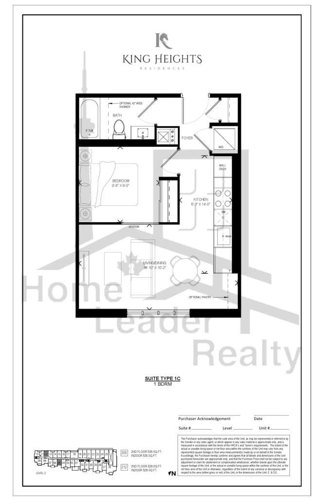 1C 1 Bed , 1 Bath 529 SQFT E/W