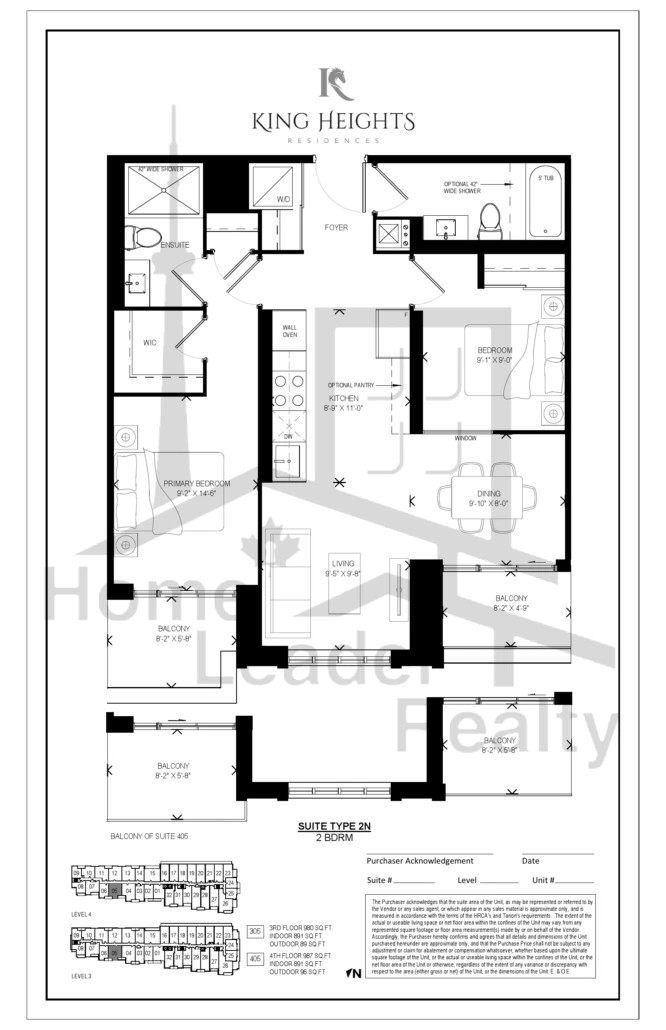 2D-K 2 BALC 2.5 Bed , 3 Bath 1183 SQFT South West
