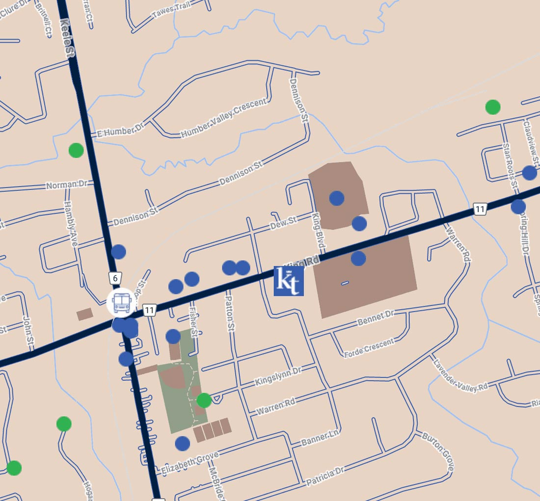 • Nearby parks include King City Memorial Park, King City Trail, Kettle Lake Park, and Dog Park Off-Leash King City