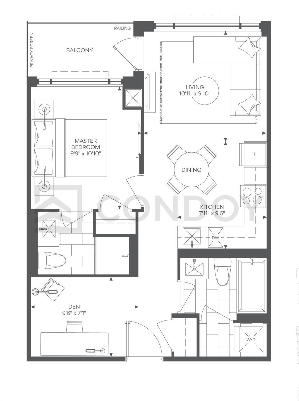 E-028 | 1.5 Bed , 2 Bath | 612 SQFT | South |