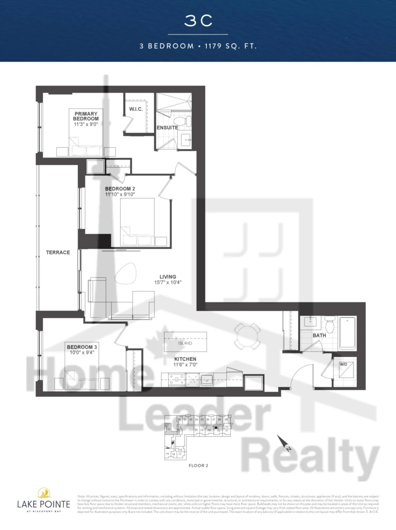 3C 3 Bed , 2 Bath 1179 SQFT West