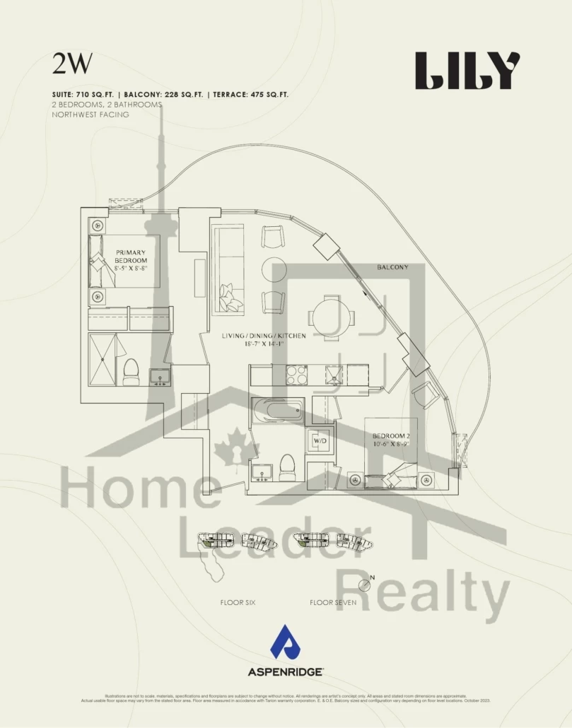 717 2W | 2 Bed , 2 Bath | 710 SQFT | South East |