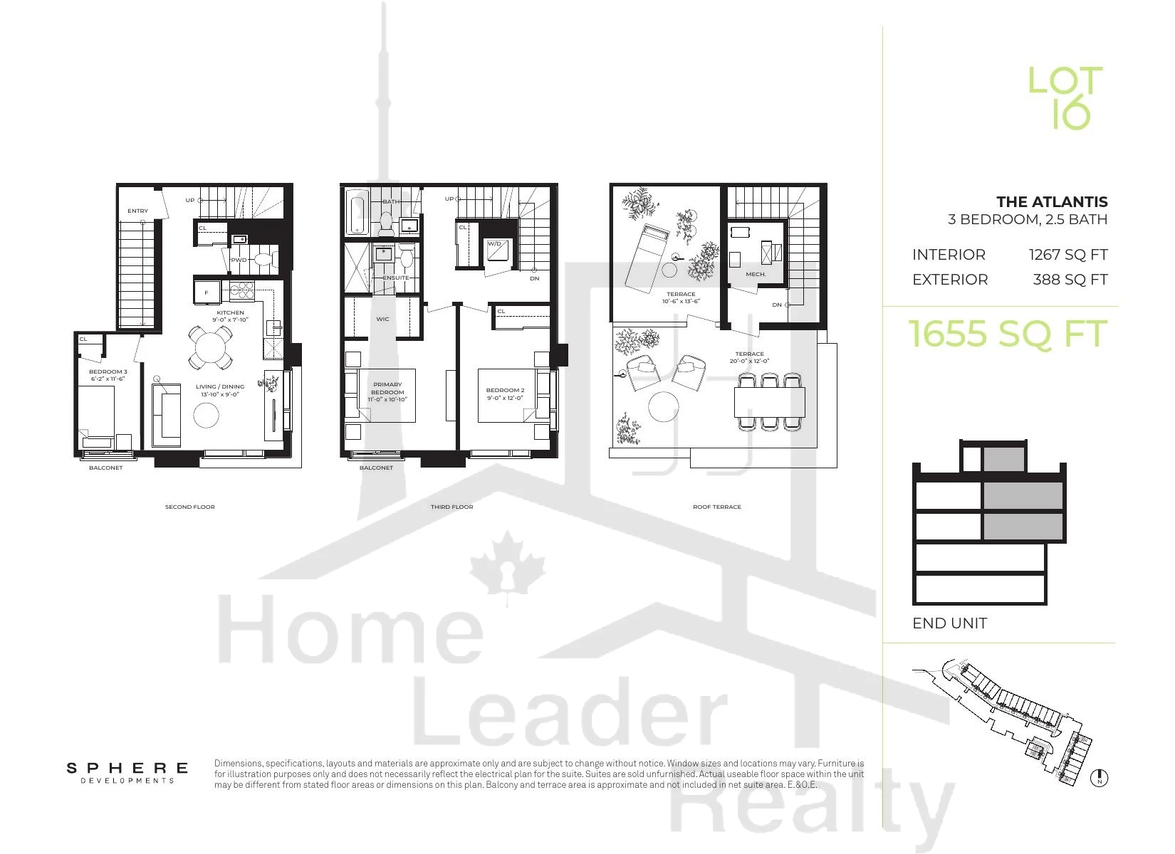 The Atlantis 350 3 Bed , 2.5 Bath 1267 SQFT S/E