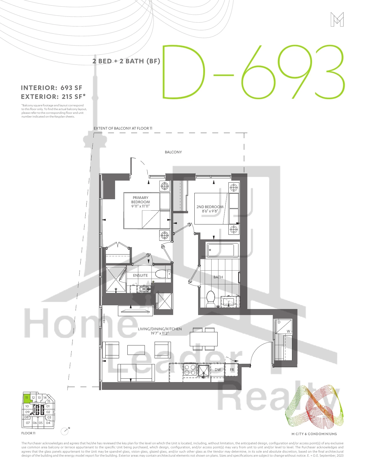 D-693 2 Bed , 2 Bath 693 SQFT North West
