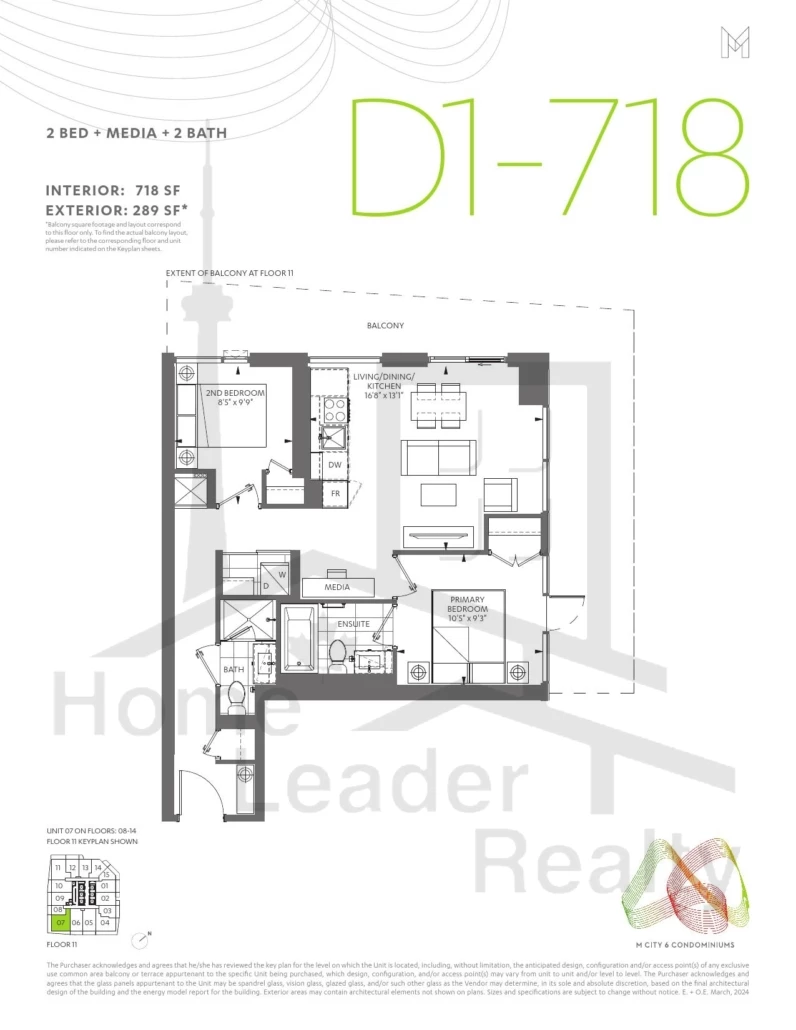 D-693 2 Bed , 2 Bath 693 SQFT North West