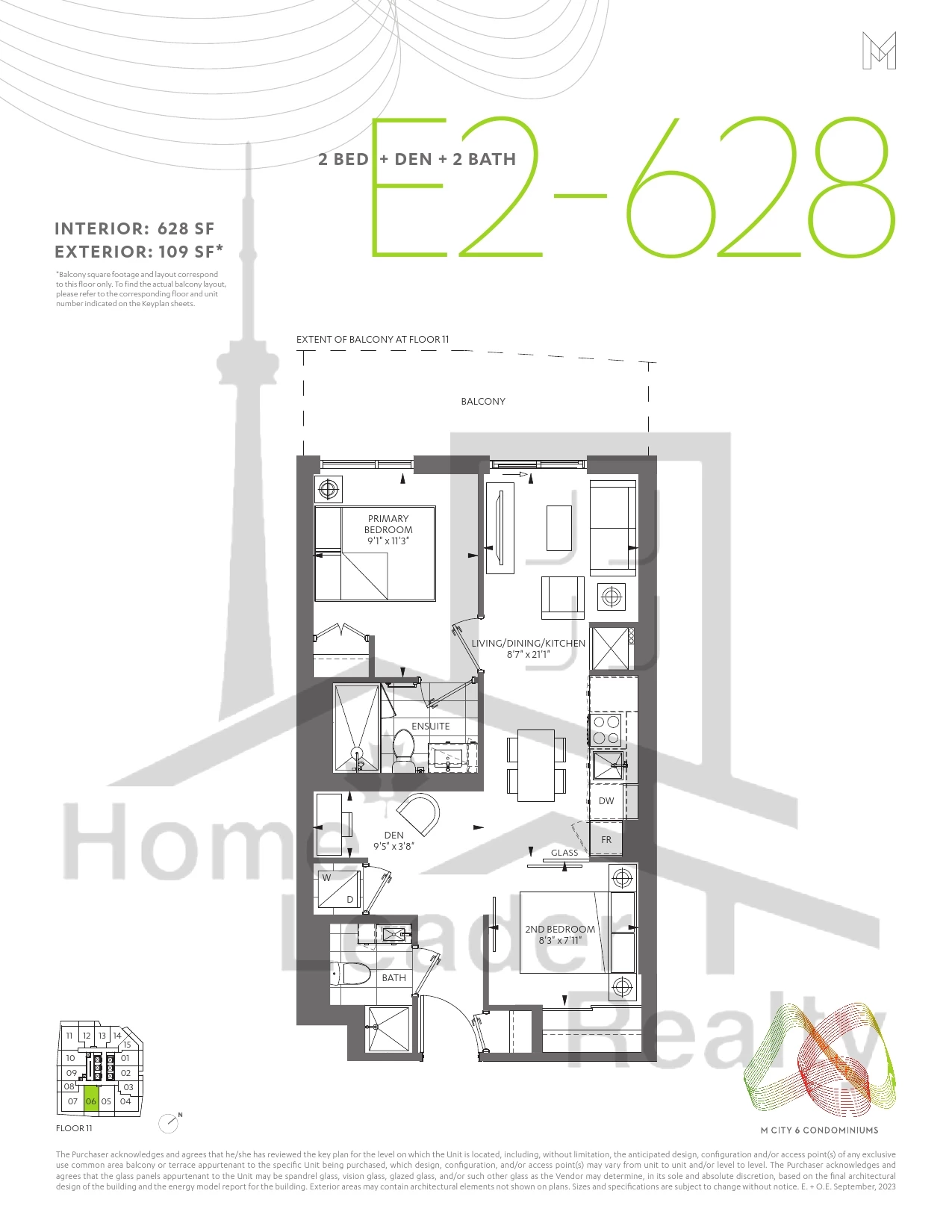 E1-628 2.5 Bed , 2 Bath 628 SQFT South