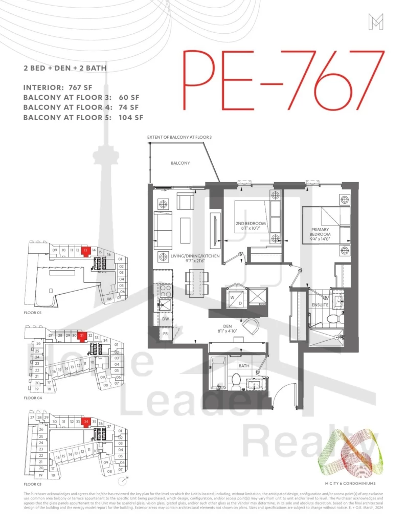 PE-655 2.5 Bed , 2 Bath 655 SQFT West