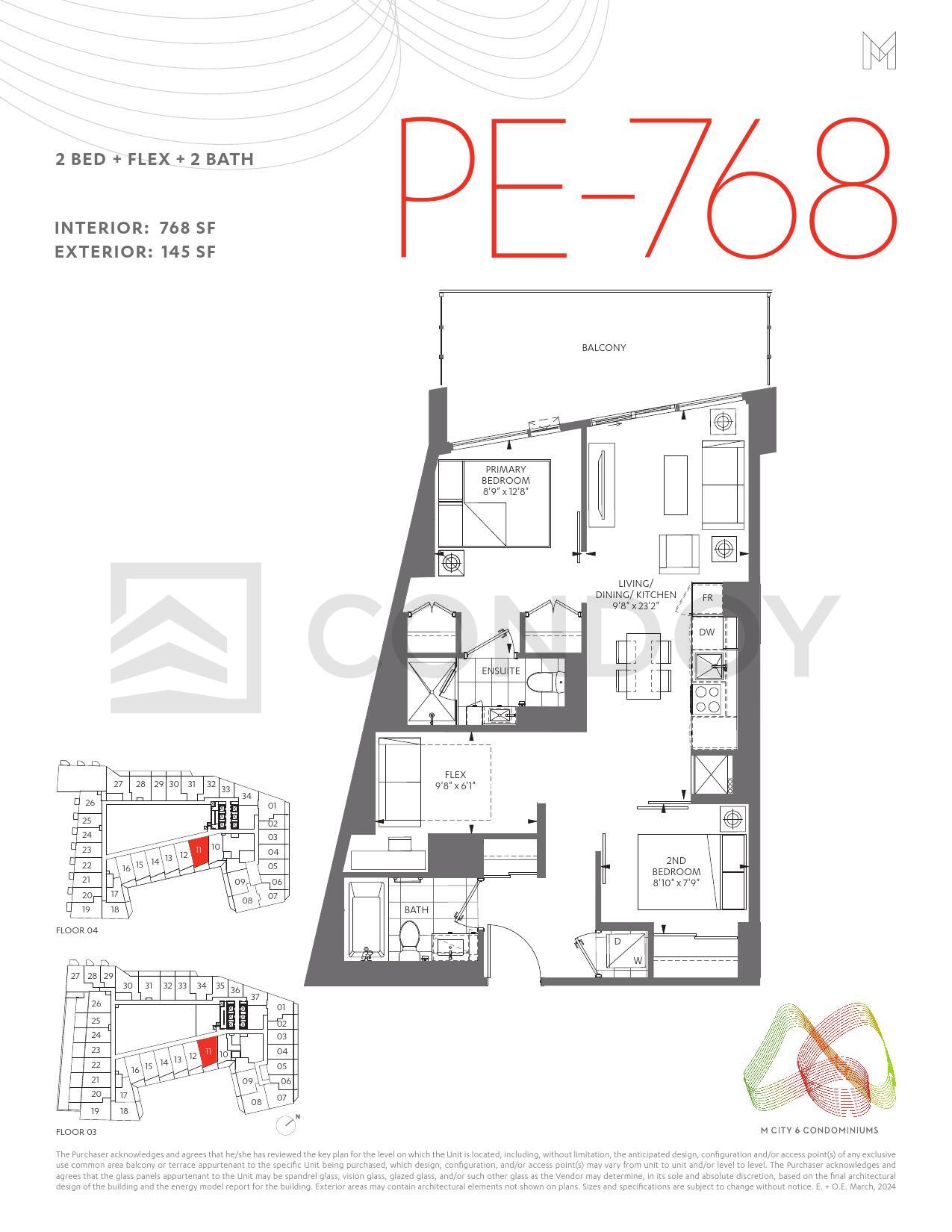 PE-655 2.5 Bed , 2 Bath 655 SQFT West