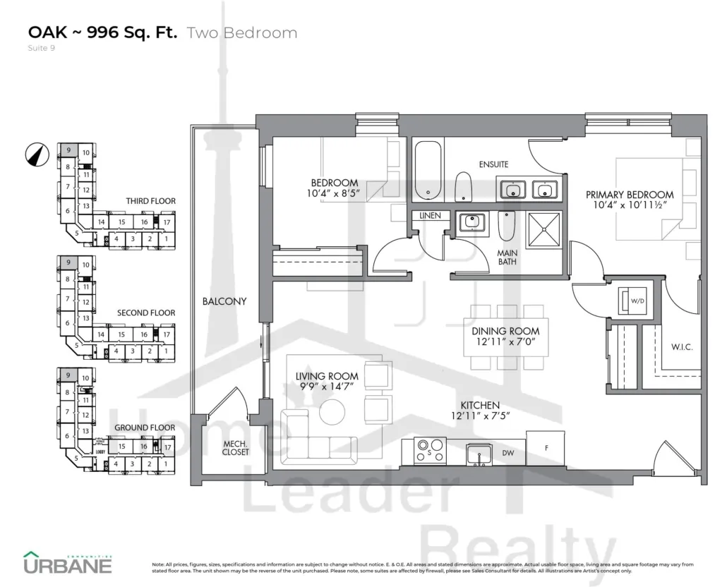Oak 2 Bed , 2 Bath 996 SQFT North