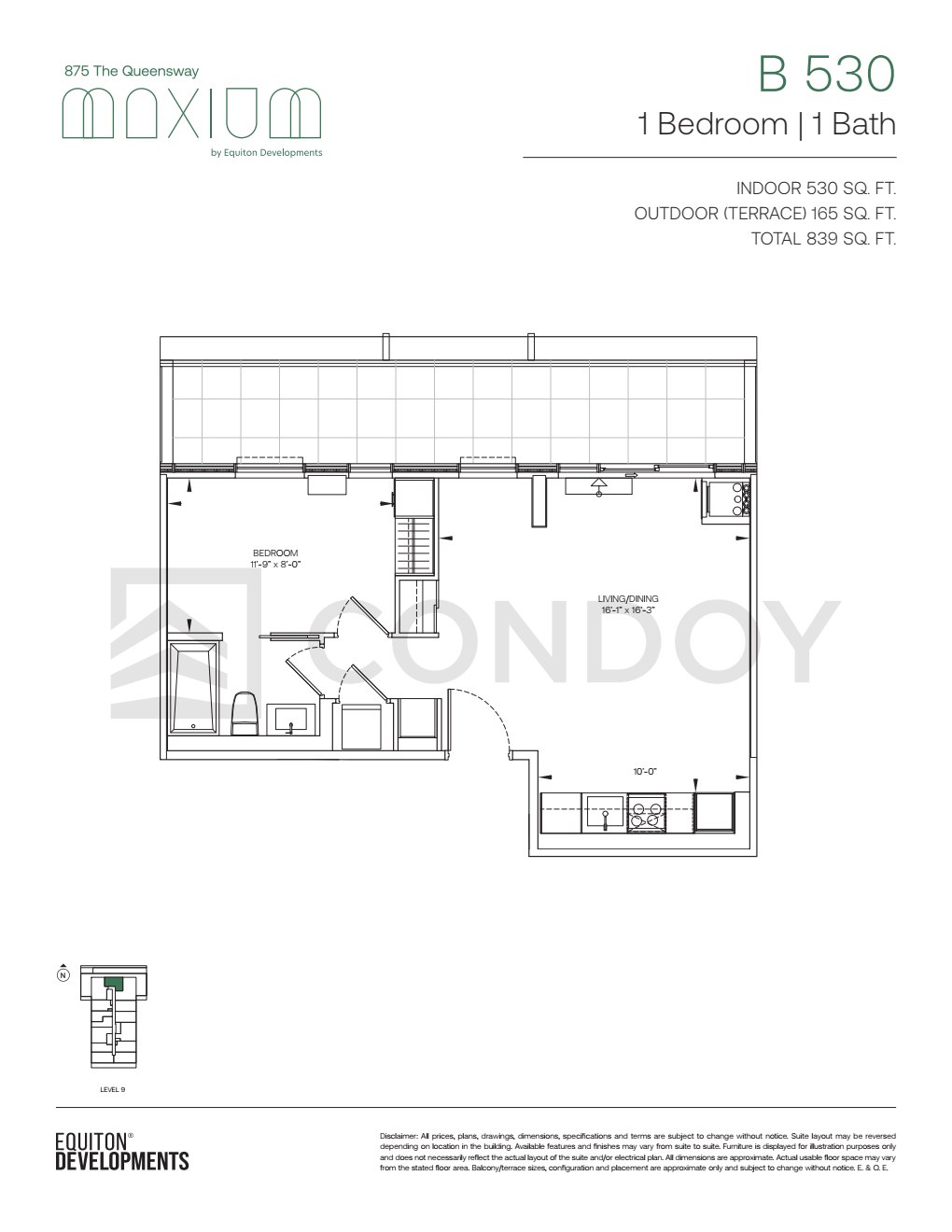 B-530 | 1 Bed , 1 Bath | 530 SQFT | North |