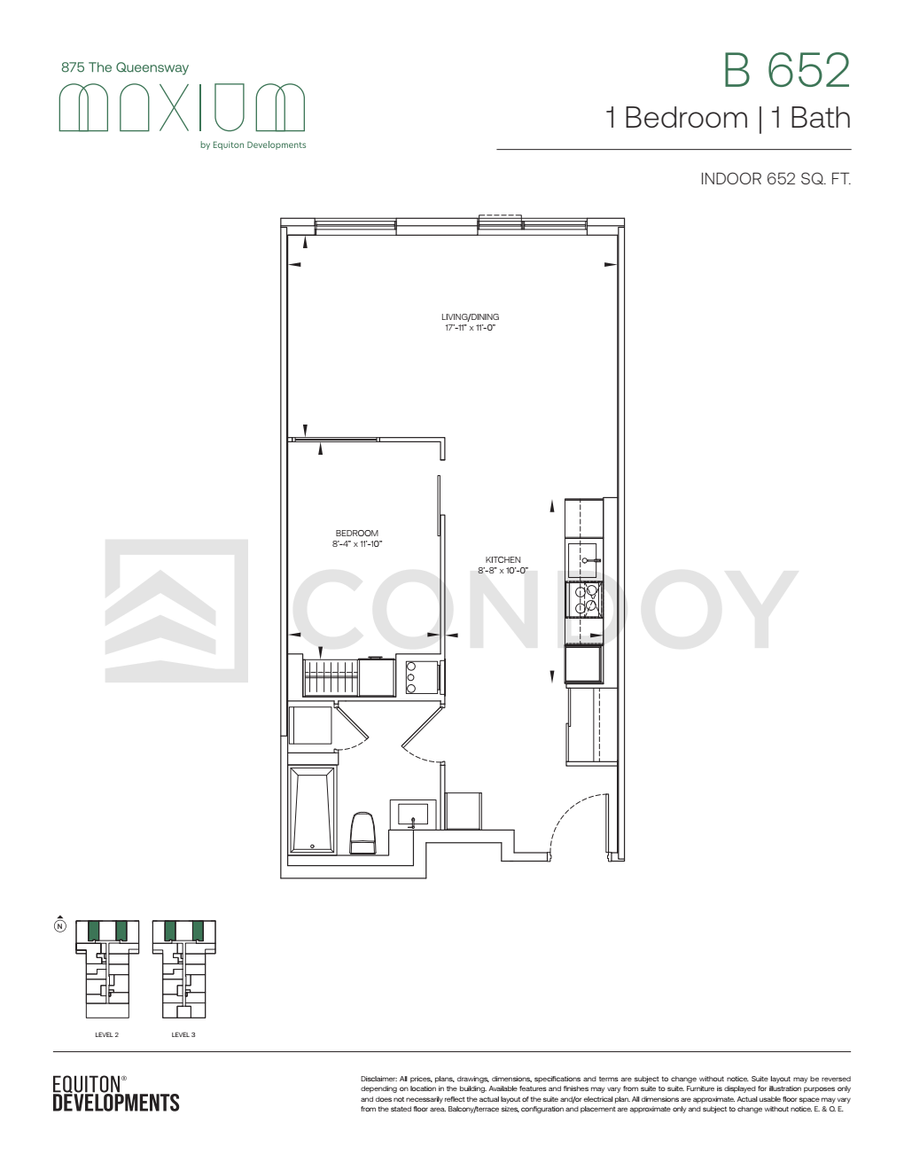B-652 1 Bed , 1 Bath 652 SQFT North