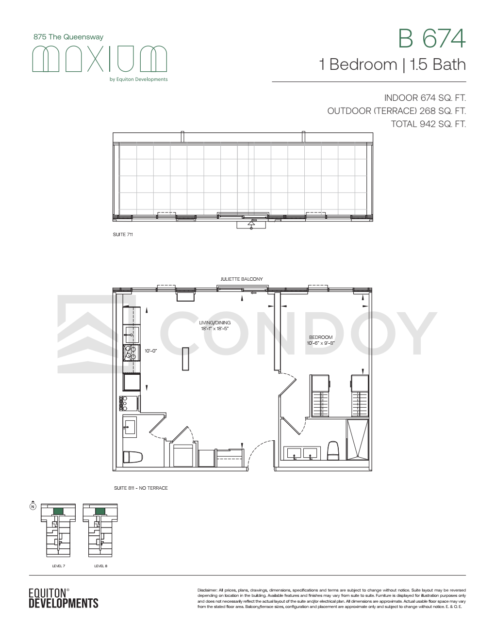B-674 1 Bed , 1.5 Bath 674 SQFT North