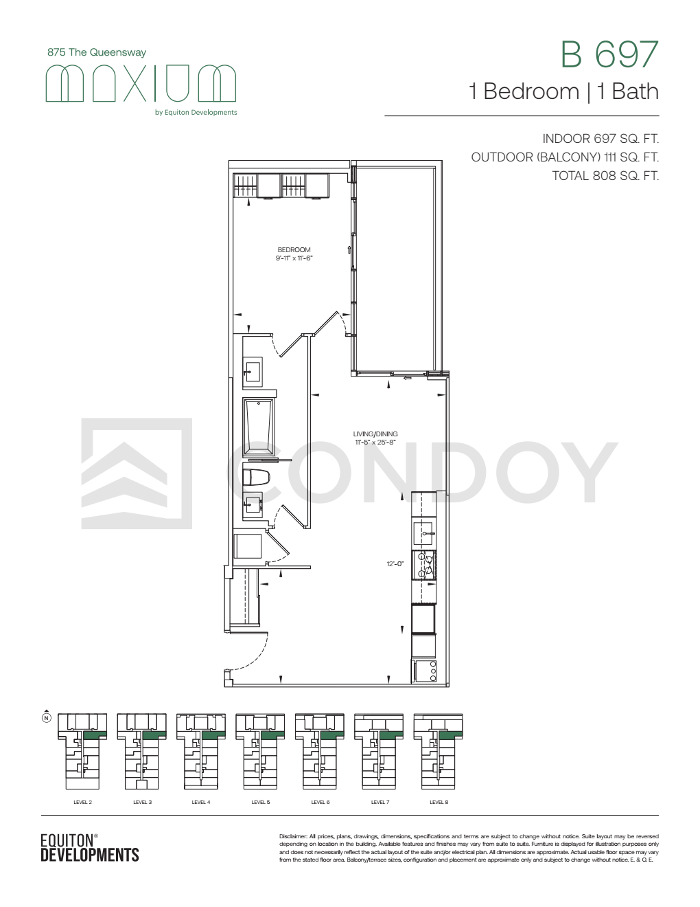 B-697 1 Bed , 1 Bath 697 SQFT South East