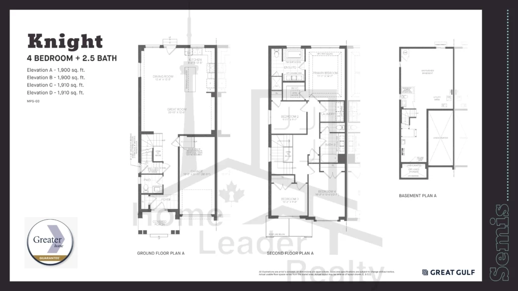 Milton Village Homes - Knight G: Luxurious freehold single family home with 4 beds, 2.5 baths and over 1920 SqFt of space. Milton-Village-Homes-Knight-G-floorplan