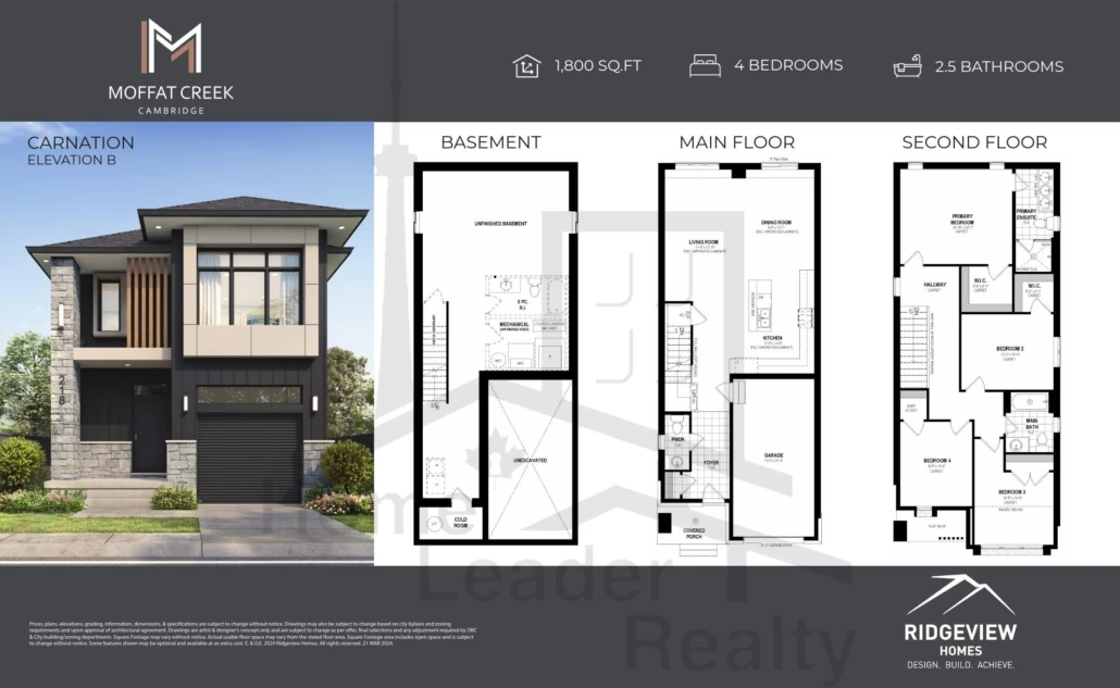 The Carnation Elevation B (4Beds) 4 Bed , 2.5 Bath 1800 SQFT