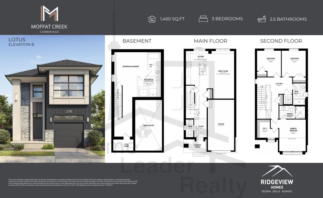 The Lotus Elevation A 3 Bed , 2.5 Bath 1450 SQFT