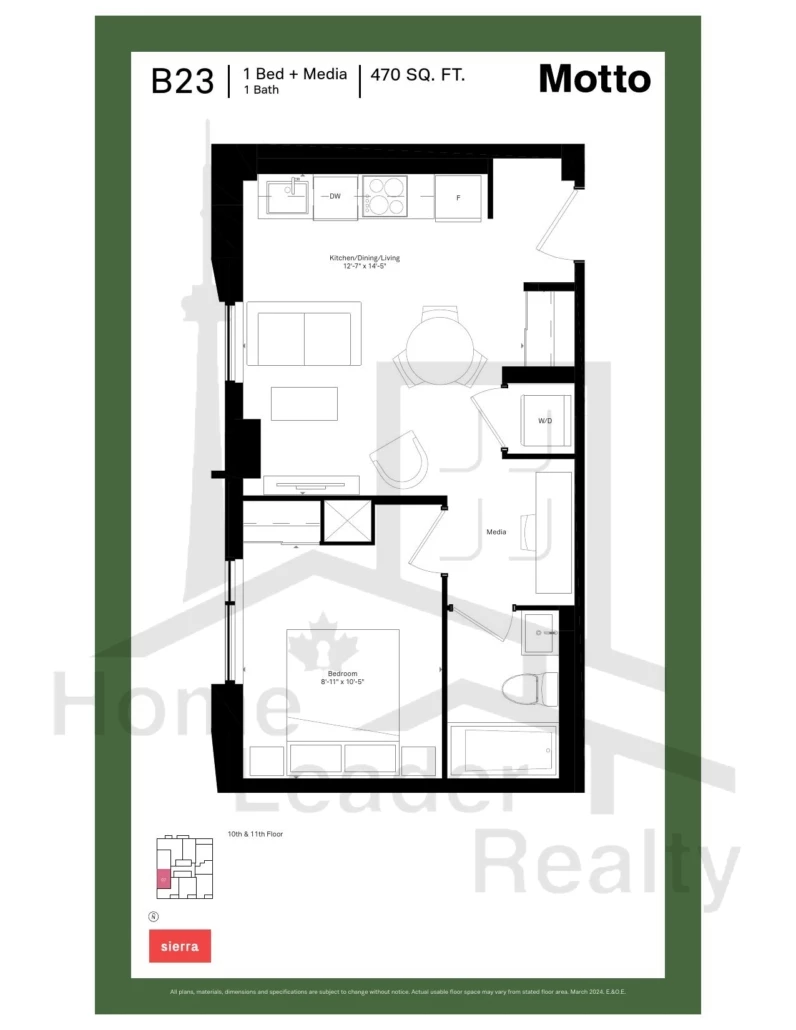 B23a 1.5 Bed , 1 Bath 470 SQFT West