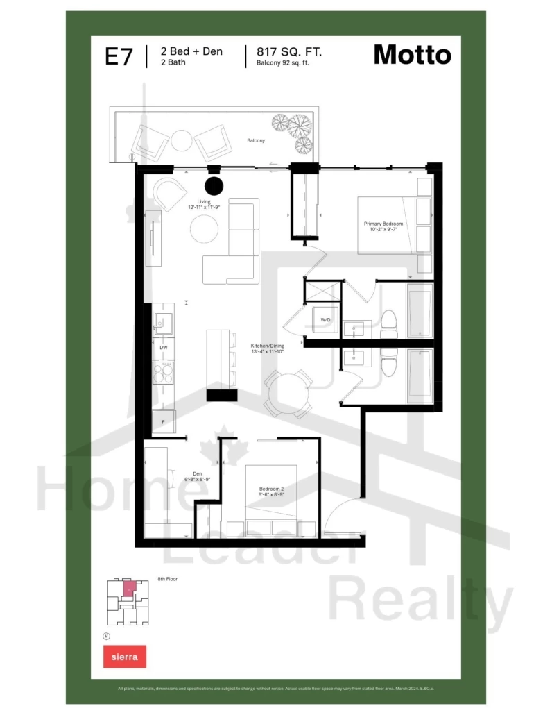 E13 2.5 Bed , 2 Bath 813 SQFT South