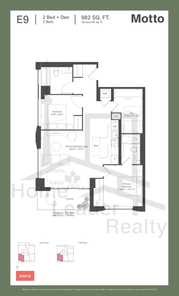 E9 2.5 Bed , 2 Bath 982 SQFT South West