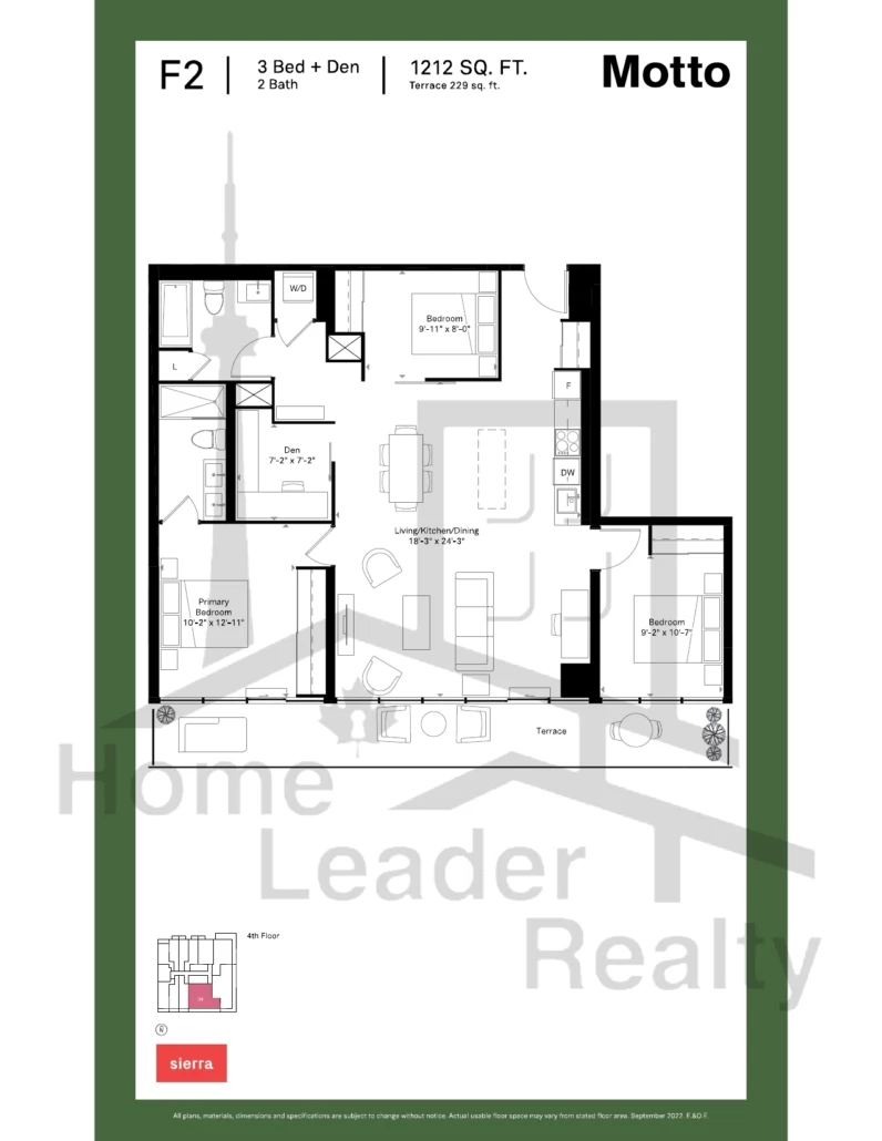F1 3 Bed , 2 Bath 926 SQFT North East