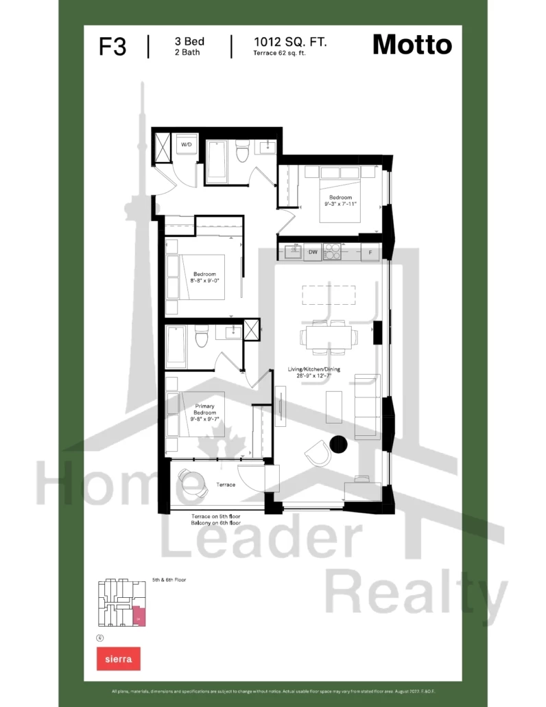 E6 2.5 Bed , 2 Bath 1044 SQFT North West
