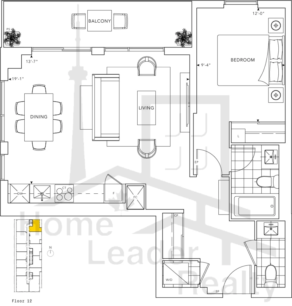 Suite-2YTA 2 Bed , 2.5 Bath 1054 SQFT North West