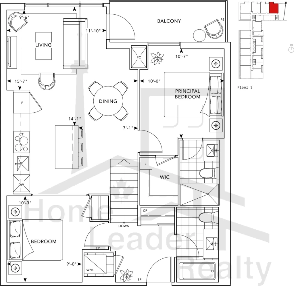 Suite-L3 2 Bed , 2 Bath 842 SQFT North