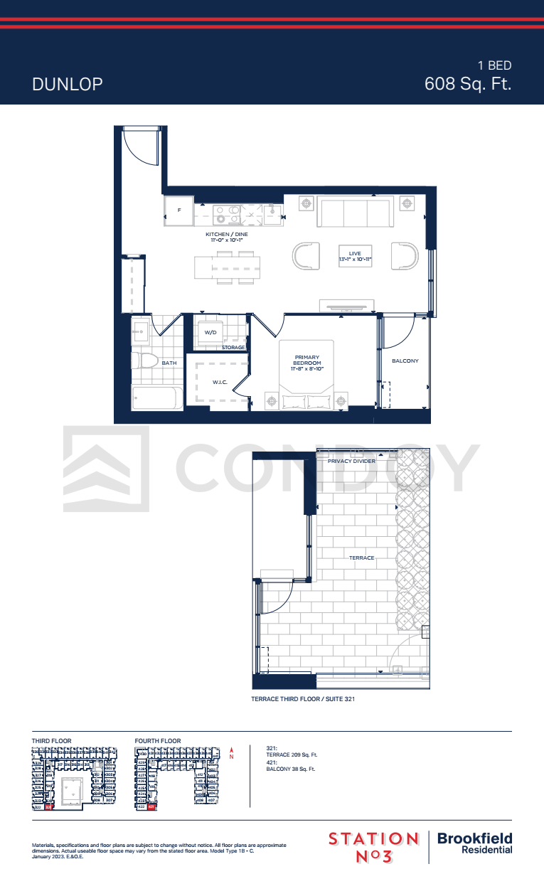 Brock 1.5 Bed , 1.5 Bath 625 SQFT East