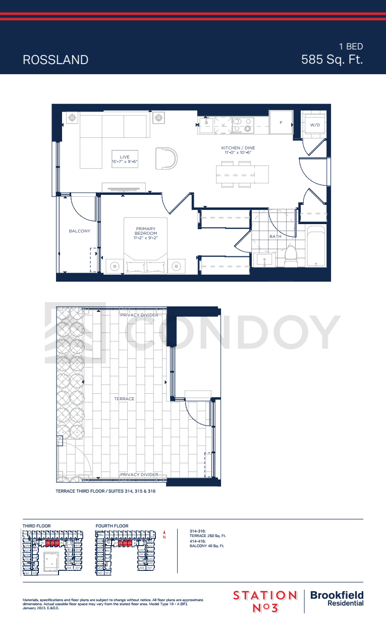 Brock 1.5 Bed , 1.5 Bath 625 SQFT East