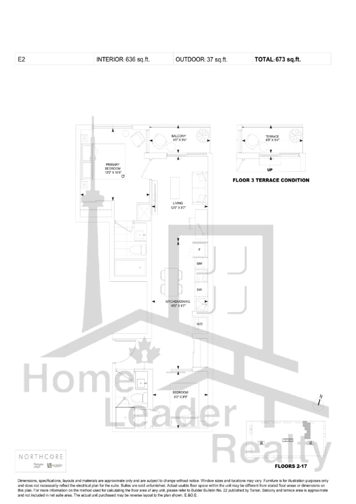 805 (E2) 2 Bed , 2 Bath 636 SQFT North