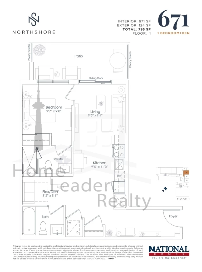 2A+D-b 2.5 Bed , 2 Bath 786 SQFT North West