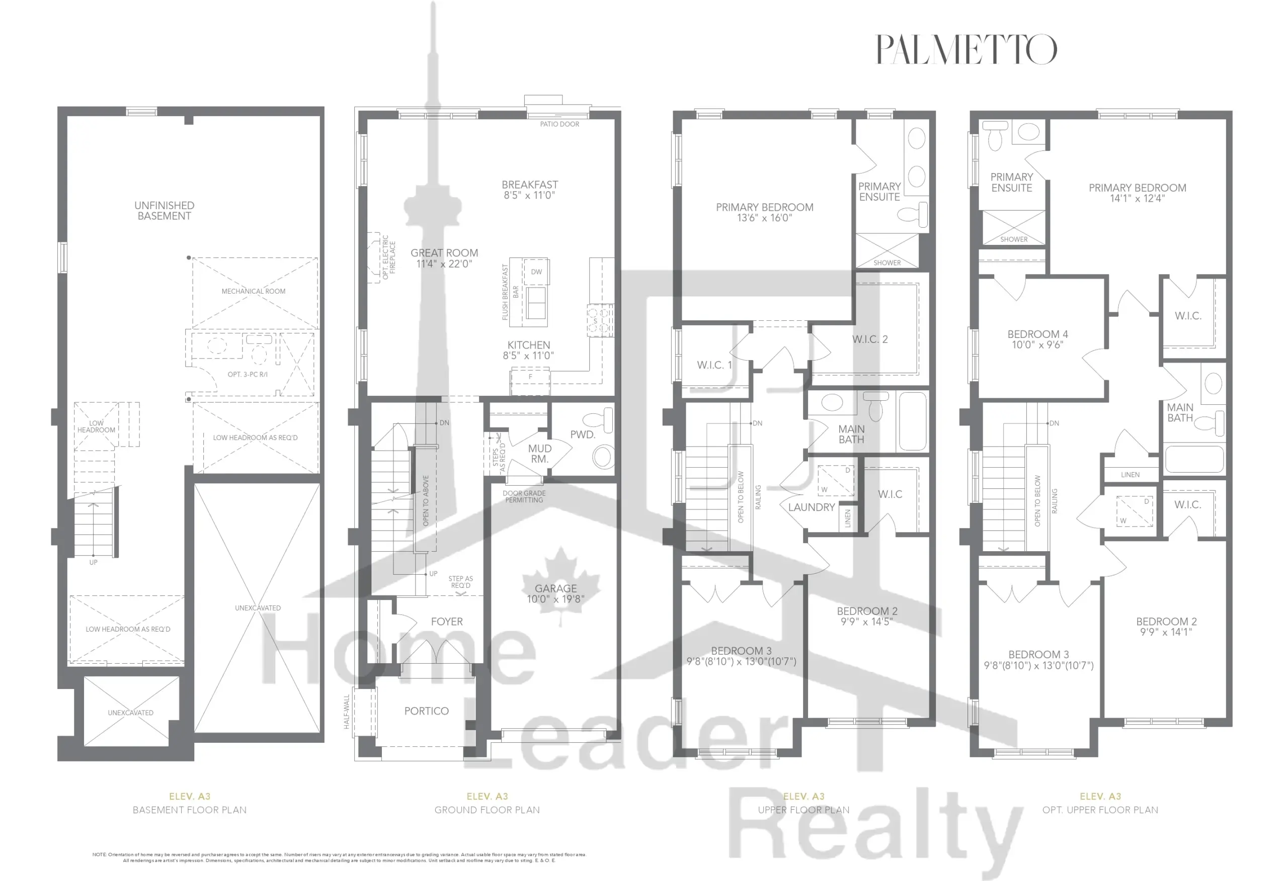 Palmetto North Oshawa Living - Ashton T3 COR El A4 - floorplan