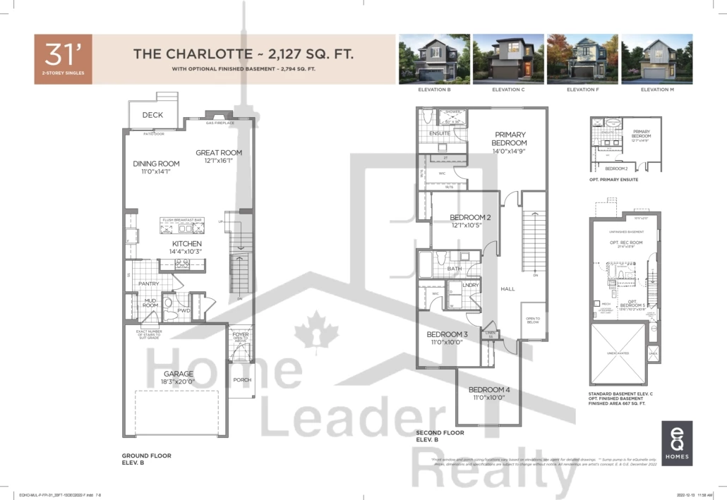 The Charlotte 4 Bed , 2.5 Bath 2127 SQFT