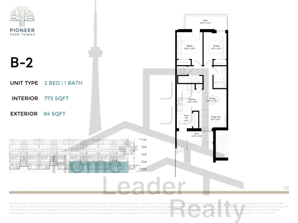 B-2 Unit 16 2 Bed , 1 Bath 773 SQFT
