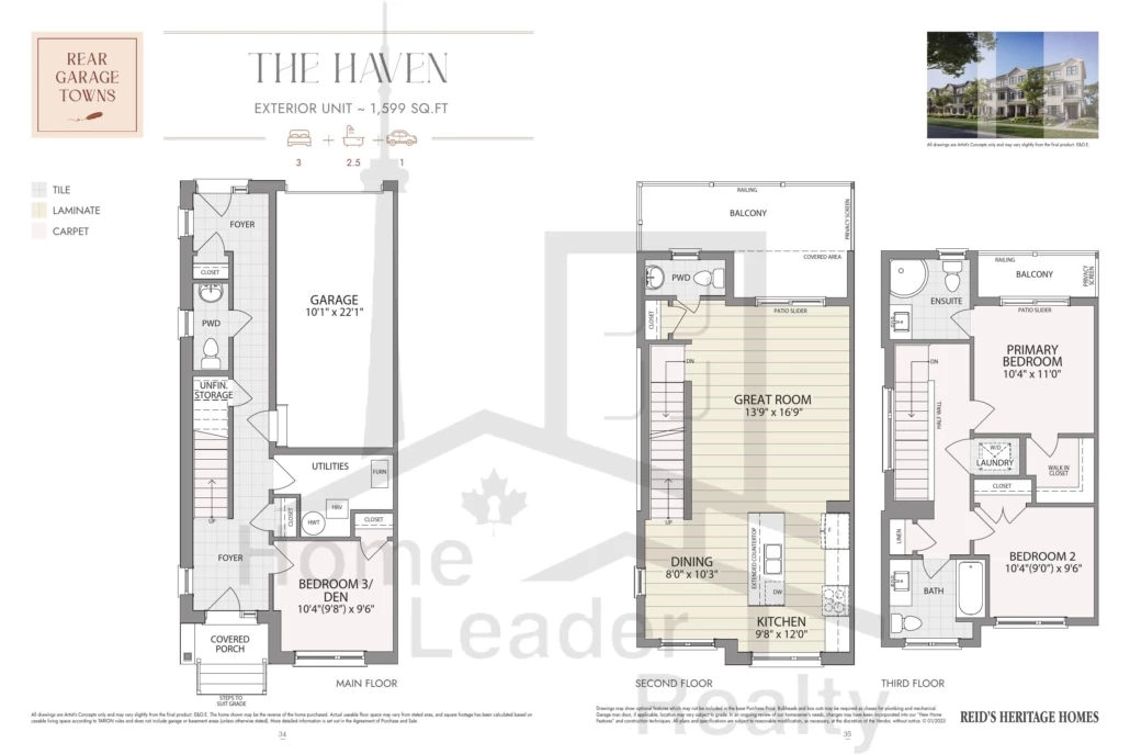 The Haven End Unit 3 Bed , 2.5 Bath 1599 SQFT
