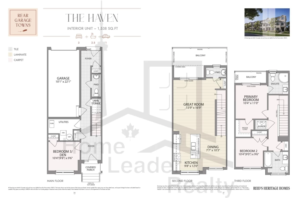 The Haven End Unit 3 Bed , 2.5 Bath 1599 SQFT