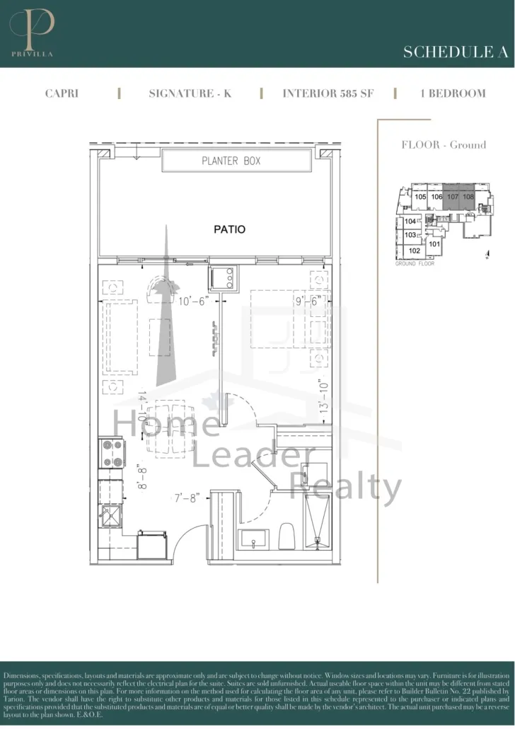 Capri Signature L 1 Bed , 1 Bath 600 SQFT North
