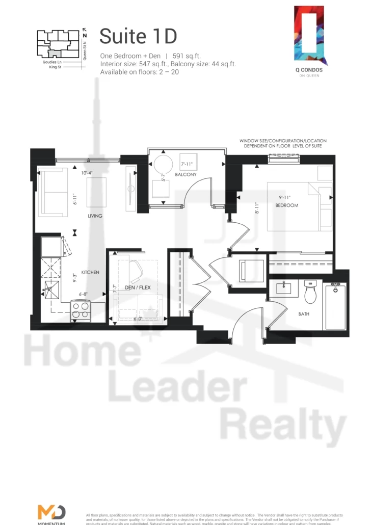 1D - Suite 505 1.5 Bed , 1 Bath 547 SQFT South