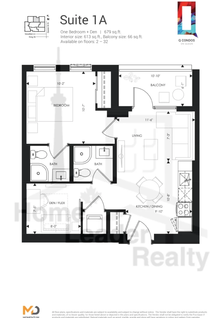 Suite 401 | 1.5 Bed , 2 Bath | 613 SQFT | North |