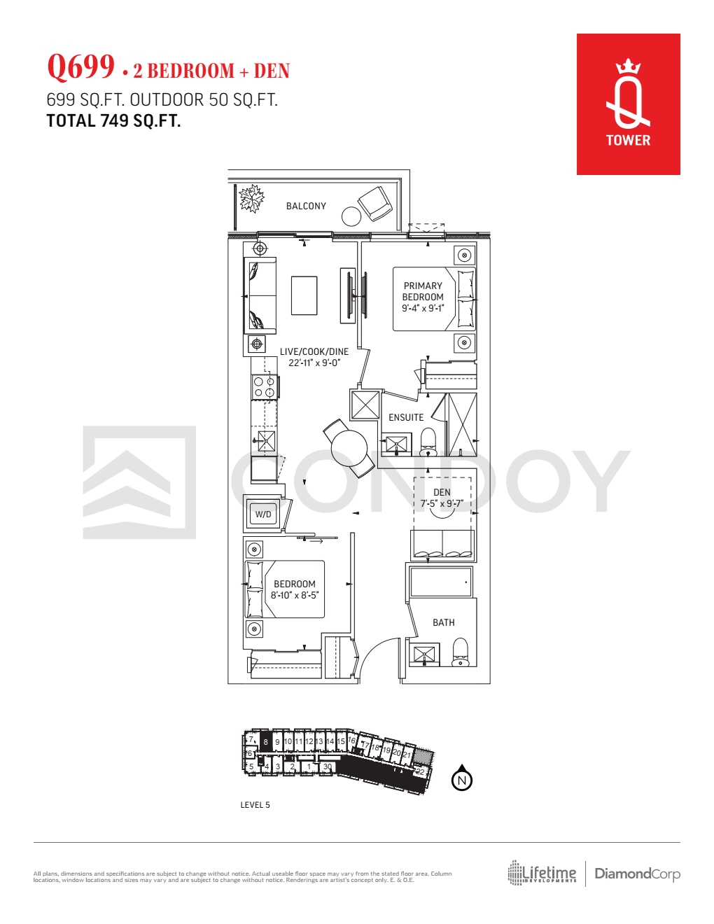 Q699 2.5 Bed , 2 Bath 699 SQFT North
