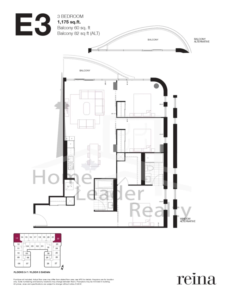 Floor Plan Request Only Reina Condos | E2 | 1245 Sq.Ft. | 3B