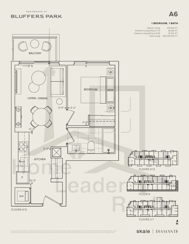 A6 1 Bed , 1 Bath 473 SQFT North West