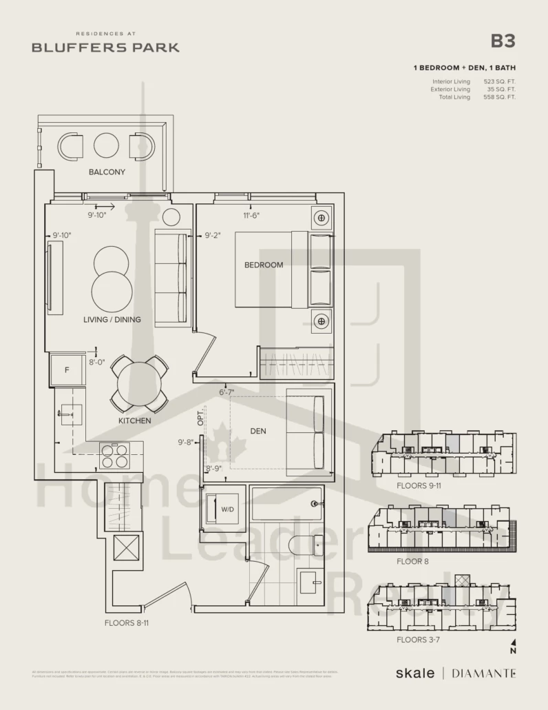 B3 1.5 Bed , 1 Bath 523 SQFT NW