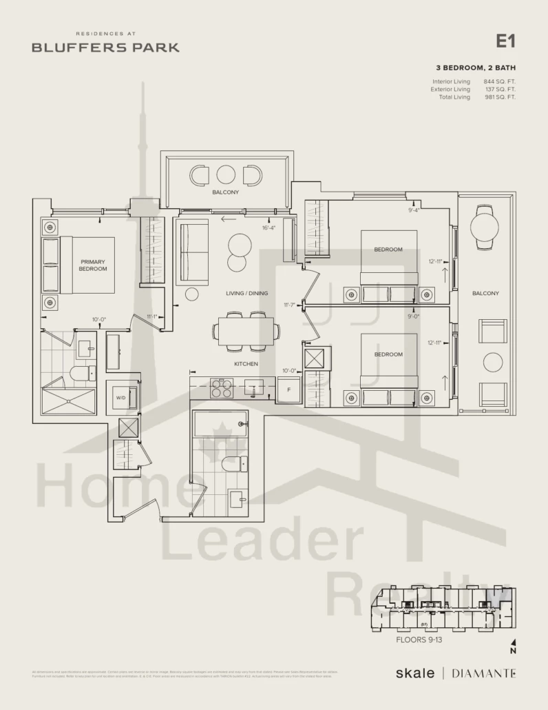 | available   | E1 | 3 Bed , 2 Bath | 844 SQFT | North East |